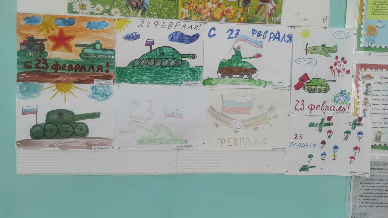 В рамках месячника военно-патриотической работы, Дня защитника Отечества в школе прошли различные внеклассные мероприятия: конкурсы рисунков, стенгазет, поделок, веселые старты, конкурс «А ну-ка, мальчики!» в начальных классах, соревнования по волейболу в старших классах, обучающиеся также очистили от снега территорию обелиска. Руководитель музея провел экскурсию в школьном краеведческом музее. Преподаватель-организатор ОБЖ провел мероприятия по стрельбе из пневматической винтовки, сборке-разборке автомата и многое другое.